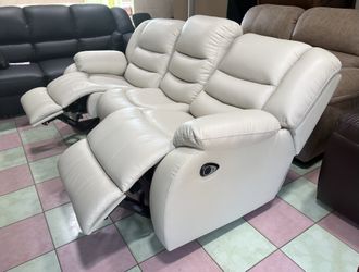 Новый финский кожаный диван с механизмами электрореклайнер.
